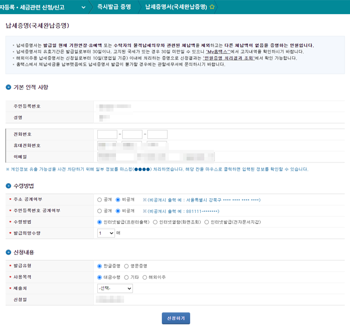 국세 지방세 납세증명서 완납증명서 인터넷발급 방법