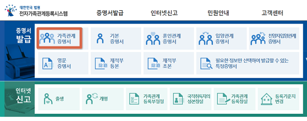 아래 버튼을 눌러 전자가족관계등록시스템 홈페이지에 접속할 수 있습니다.