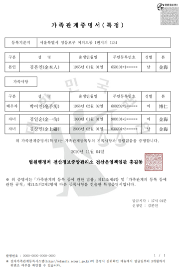 A. 신청 대상자의 주민등록번호가 없거나 주민등록번호를 알 수 없는 경우에는 신청 대상자의 성명과 등록기준지를 알아야 증명서를 발급할 수 있습니다. 등록기준지를 틀리게 기재한 경우에 신청인이 등록기준지를 정확하게 수정한 발급신청서를 제출하지 않으면 증명서를 발급할 수 없습니다.