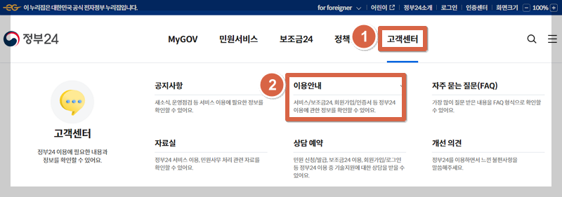 ① 정부24에 접속