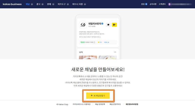 스마트폰에서 카카오톡 채널을 만드는 방법은 다음과 같습니다.