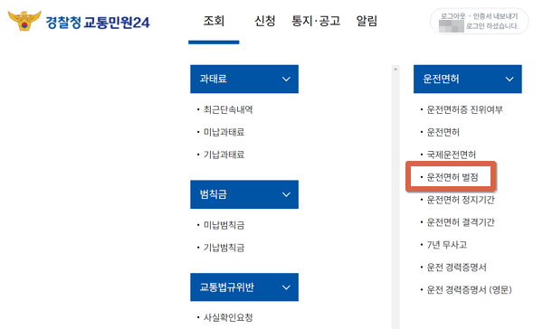 운전면허 벌점 조회 확인 방법