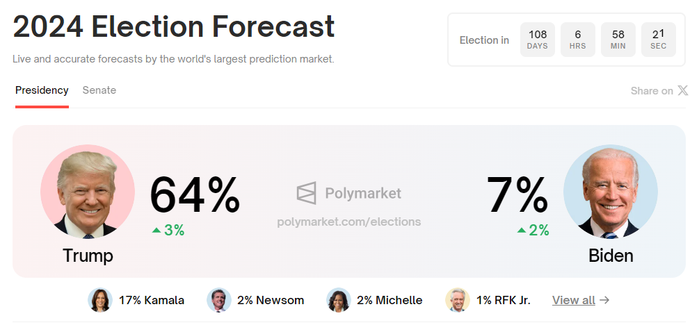 대선 후보 공식 지명 절차만을 남겨둔 현직 대통령이 재선 도전을 공식 포기하는 미국 역사상 초유의 상황이 발생하면서 미국 대선판이 요동치고 있고, 바이든 대통령이 당 후보로 지지한 카멀라 해리스 부통령이 대안으로 떠오르고 있지만 트럼프 전 대통령의 승리 예측 분위기도 여전히 이어가는 분위기입니다.